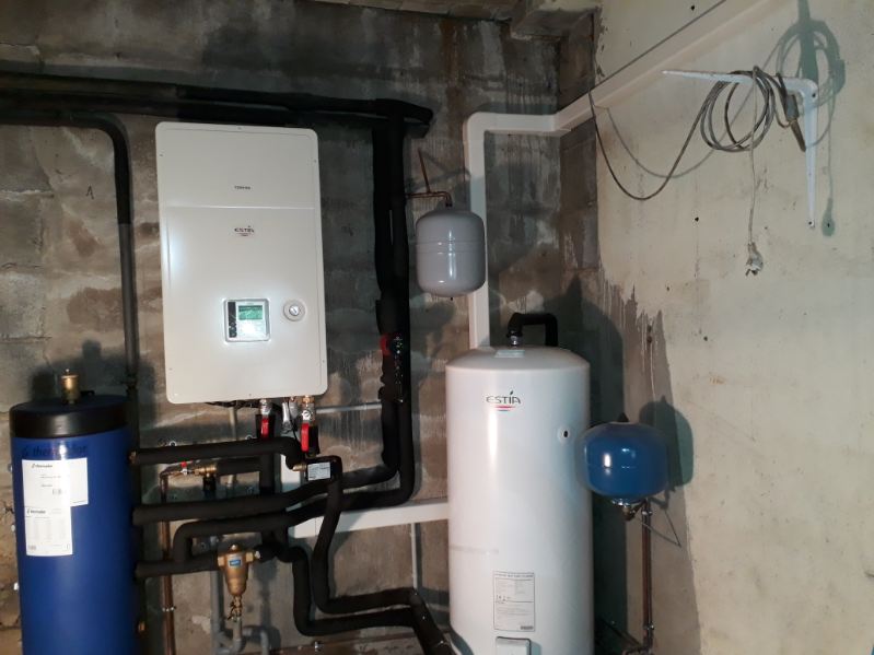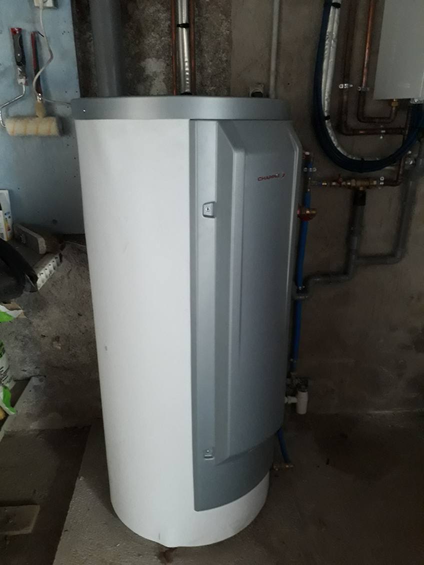 Ancienne installation démontée, pose d’un nouveau ballon thermodynamique et optimisation du réseau pour un meilleur rendement énergétique.